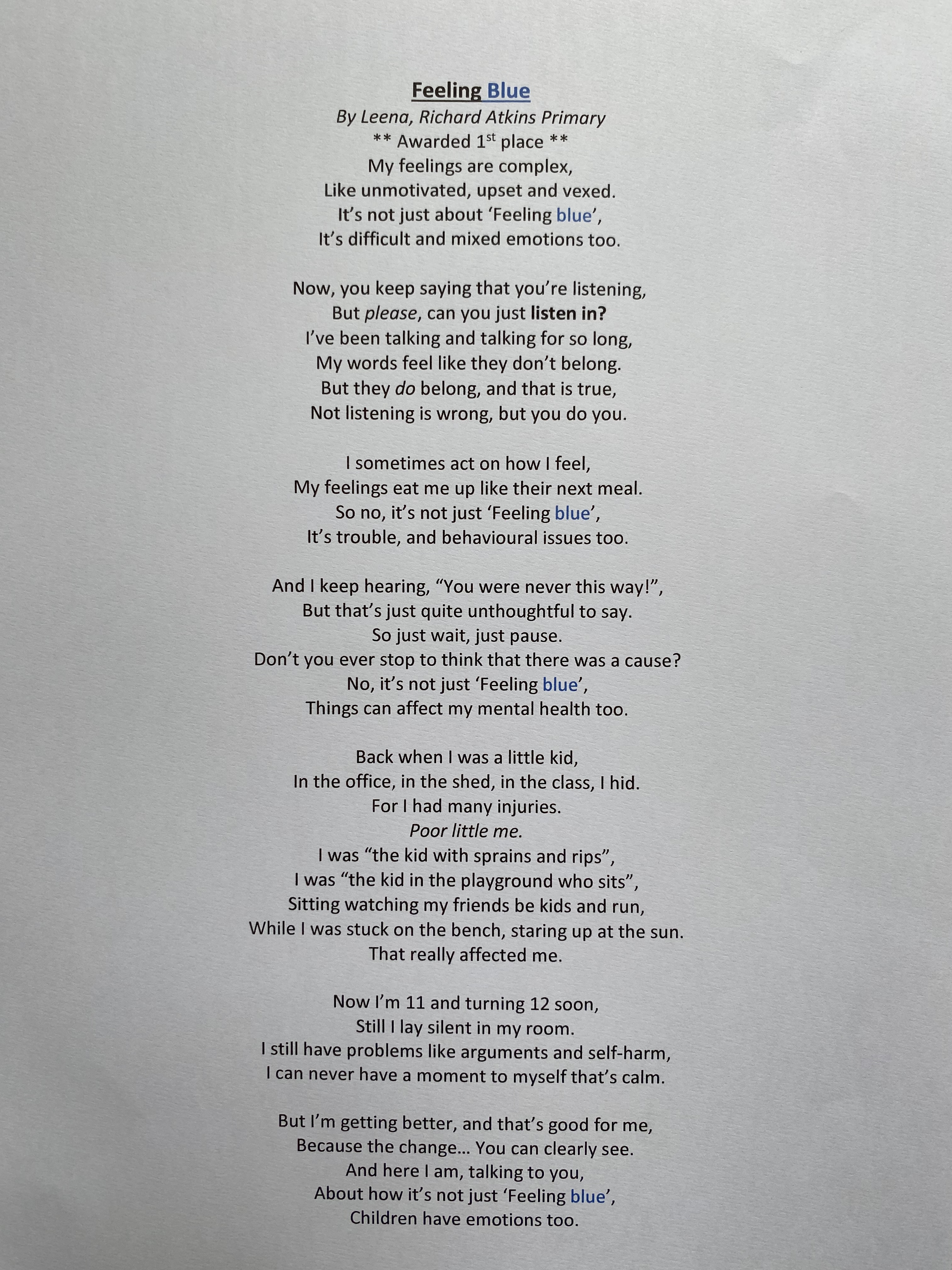 The Cluster Poetry Festival goes from strength to strength and each year the standard of writing and performance improves. This year’s theme was ‘My Untold Story’ and pupils from seven cluster primary schools took part in the programme of inter-school heats, culminating in a final event held at Trinity Academy, hosted by performance poet Adisa, with a judging panel made up of staff and students from Trinity. The judges were blown away by the talent, with first place awarded to Leena from Richard Atkins Primary, who also won the competition last year. We wish Leena well in her move to secondary school and look forward to hearing more of her wonderful writing in the future!
